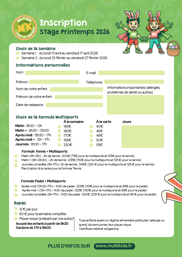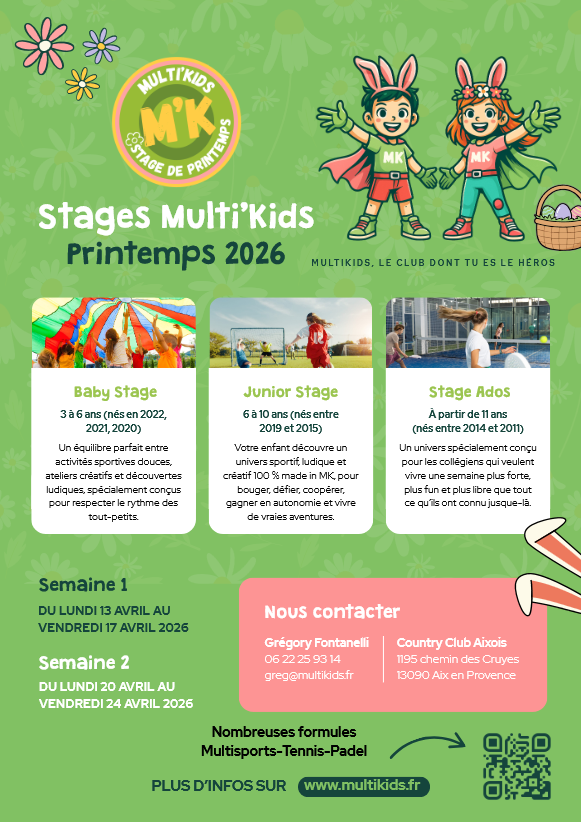Professeur titulaire au club au et homme de Théâtre, Grégory vous propose avec le Multikids, un club Multisports à l’année, des stages multisports pendant les vacances et organise les anniversaires de vos enfants.